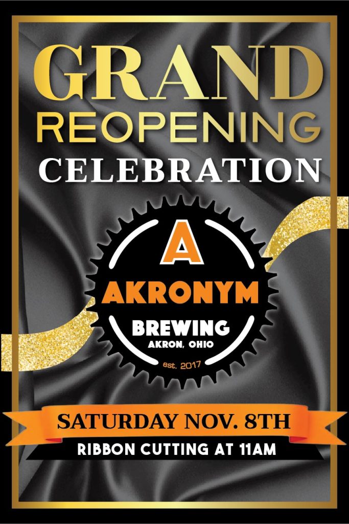 Join us as we celebrate the official grand reopening of Akronym Brewing, and the begining of our brand new food menu!