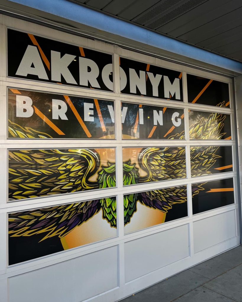 New artwork out front. We can’t wait to open these doors! AKRONYM BREWING COMING SOON