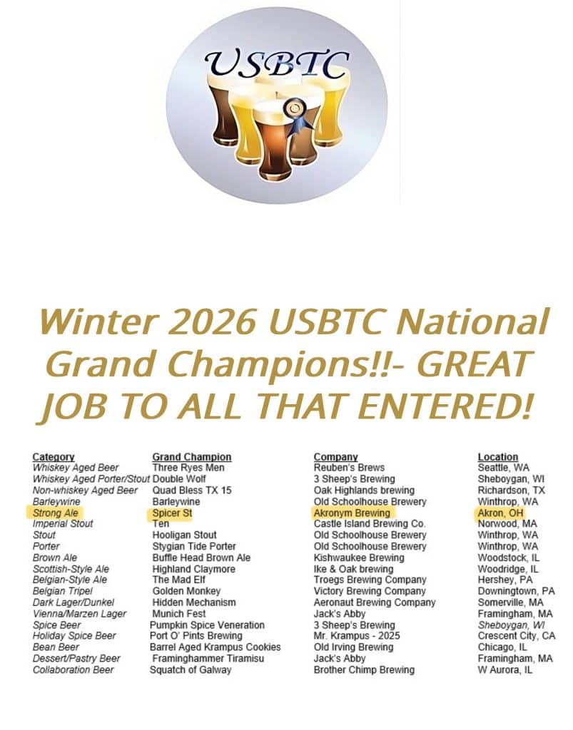 Our Spicer St. Christmas Ale has been named the National Grand Champion in the Strong Ale category at this year’s Winter U.S. Beer Tasting Competition. We could not be more proud of our brewer, Shawn Adams, for this incredible accomplishment!